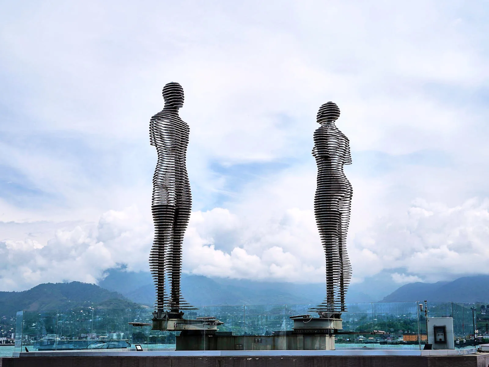 Памятник Али и Нино. Каждый день в 19 часов фигуры оживают — приближаются друг к другу, сливаются и вновь расстаются. Так скульптор Тамара Квеситадзе изобразила историю любви мусульманина и христианки — грузинской принцессы, описанную в романе «Али и Нино» неизвестного азербайджанского писателя.