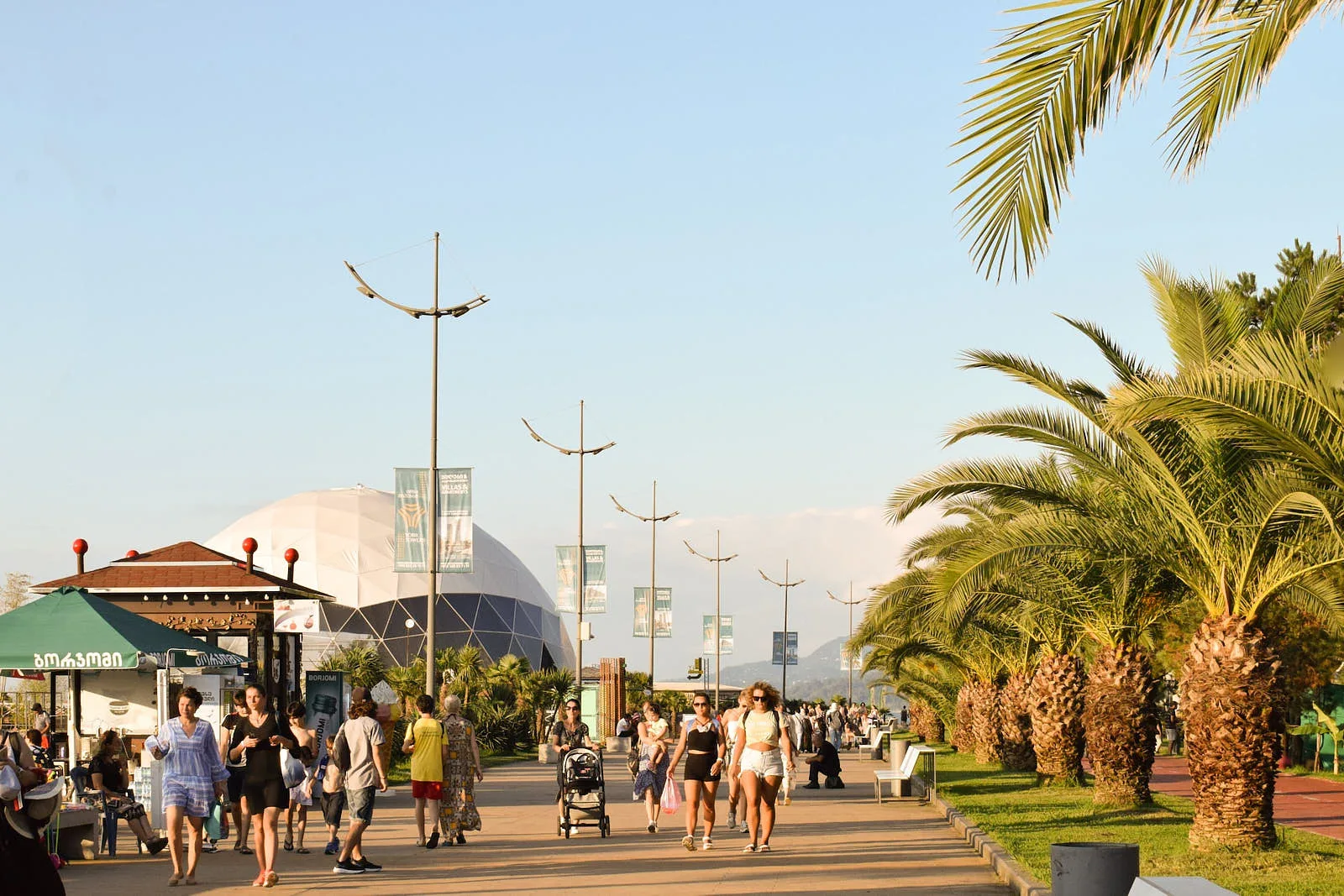 И финишная точка набережной и бульвара — площадка возле аэропорта. Одно из самых инстаграмных мест Батуми, где можно снять взлетающие или прилетающие в город самолеты. За фото и видео лучше идти в будни — в выходные очень многолюдно: сюда приезжают свадебные процессии, байкеры, местные жители.