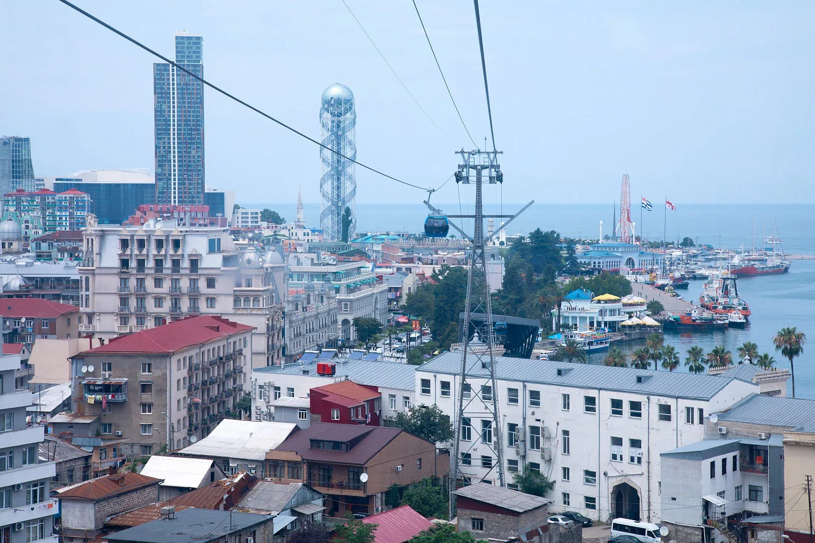 Возле Батумской бухты и порта находится нижняя станция канатной дороги «Арго», которая считается одной из самых длинных в Европе — 2600 метров. Канатка ведет на вершину горы Анурия. Там, на высоте 260 метров, можно выпить чашку крепкого кофе с видом на Батуми. Билет туда — обратно стоит 30 лари (896.8 рублей). Любители пеших прогулок могут подняться на смотровую и без канатной дороги, через аутентичные деревни с мандариновыми садами — от порта идти не больше шести километров.