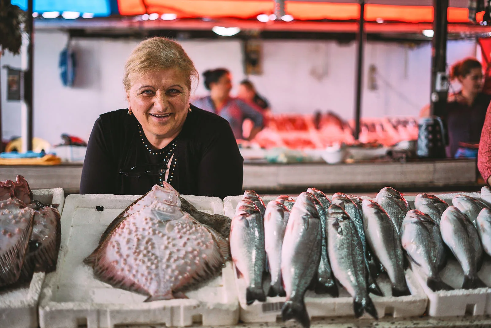 За морепродуктами отправляйтесь на рыбный рынок. В местных ресторанах за небольшую доплату в пять — десять лари (149.5–298.9 рублей) за килограмм для вас приготовят все, что выберете на прилавках. Здесь же можно поесть с видом на море, заказав дополнительно из меню блюда или напитки.