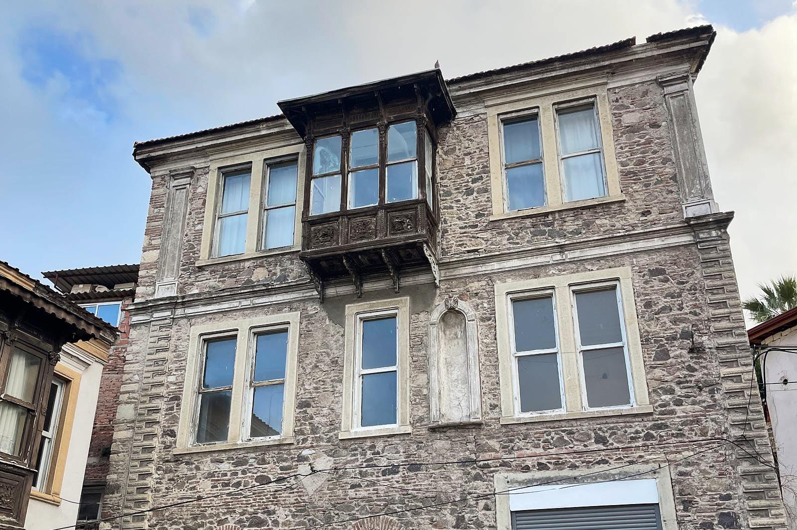 В пожаре 1922 года была уничтожена больша́я часть города, но кое-что все-таки уцелело. Главный район для прогулок — треугольничек между станцией Alsancak, набережной и улицей Talatpaşa Blv. Тут же много баров, кофеен и ресторанов, есть и пешеходная улица Kıbrıs Şehitleri Cd — не самая приятная и очень людная. Лучше бродить вокруг нее, а не по ней. Узкие улочки, перпендикулярные морю, занимают бары, поэтому, чтобы смотреть архитектуру, лучше приходить до наступления темноты. Один из старых домов занимает Galerie A ♡ — двухэтажная галерея в историческом здании. Напротив нее находится масштабный католический храм Нотр-Дам дю Розер. Но не стоит обманываться его видом — он построен в 1947 году. Буквально за углом еще одна галерея — K2.