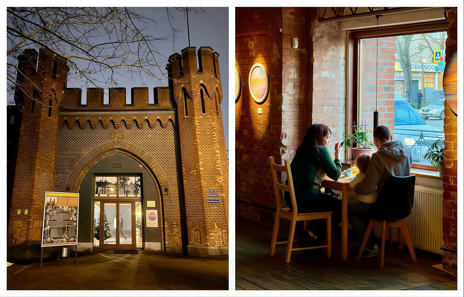 «В гостях у Канта». Тут самое обширное кофейное меню в городе! Даже базовые латте и капучино могут удивить, ведь в них добавляют морскую соль. Для любителей кофе в турке тут готовят его на песке. Напитки делает сама хозяйка заведения, которая знает о кофе все и готова говорить об этом часами, как и об истории города. Кофейня расположена почти в том же месте, где когда-то родился Иммануил Кант.