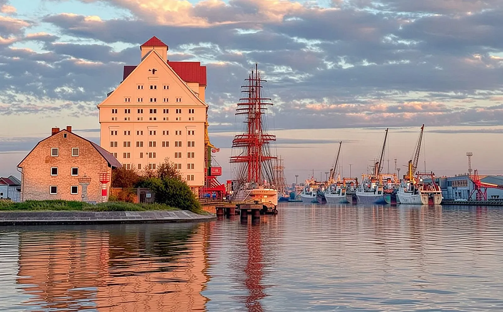 Уникальный вид на порт открывается из квартиры в бывшем немецком элеваторе. Представьте: вы просыпаетесь, открываете шторы — а перед вами проходят суда. Стоимость: от 10 000 рублей за сутки.