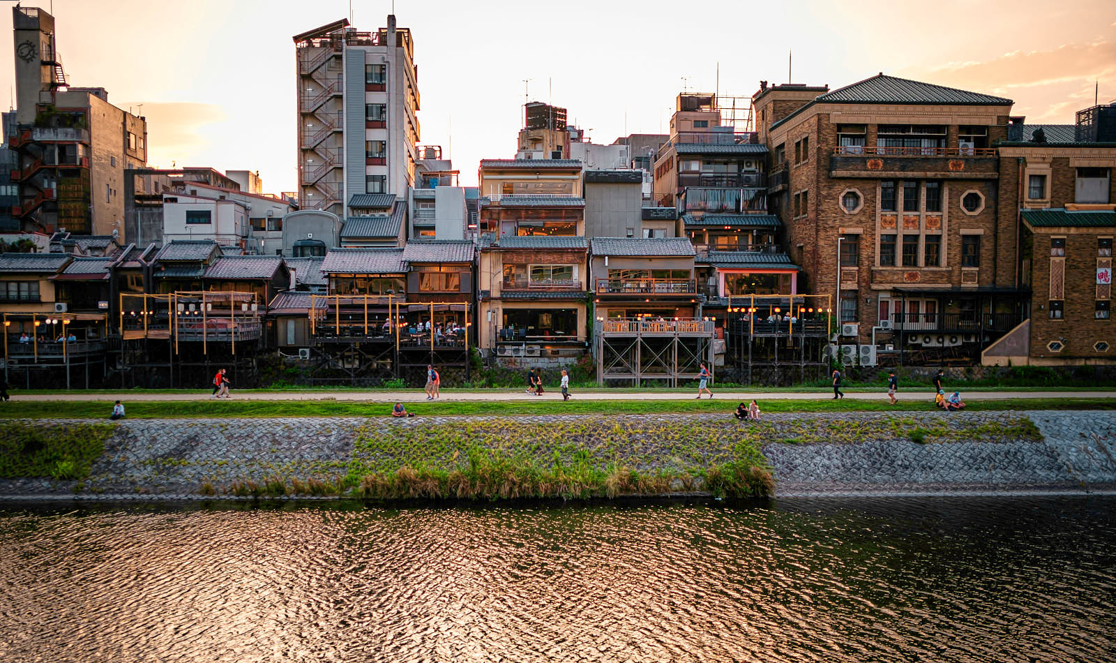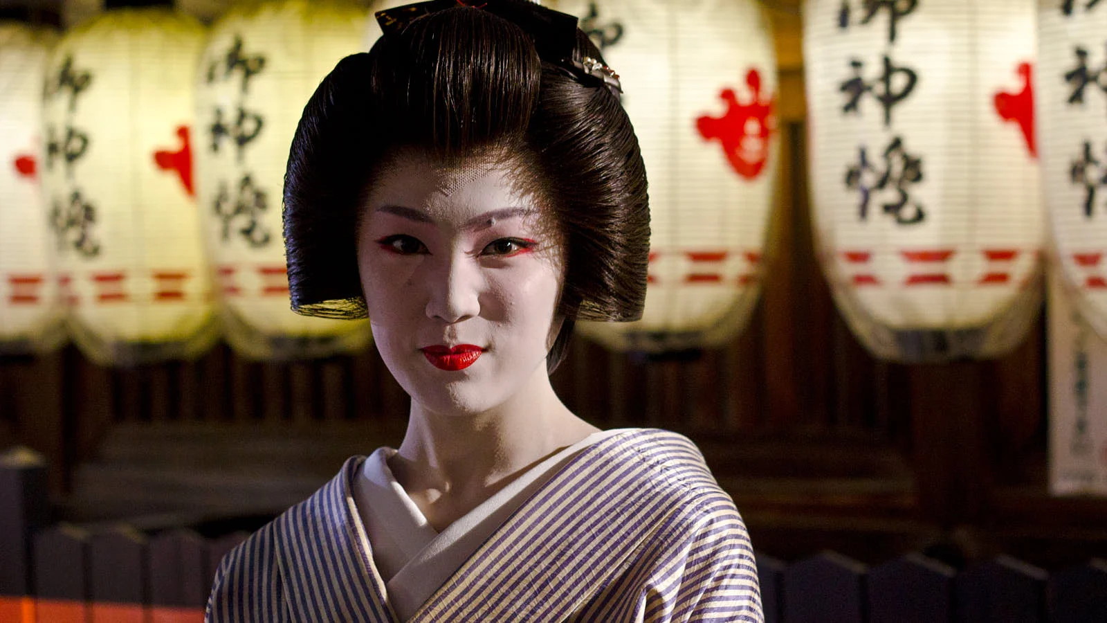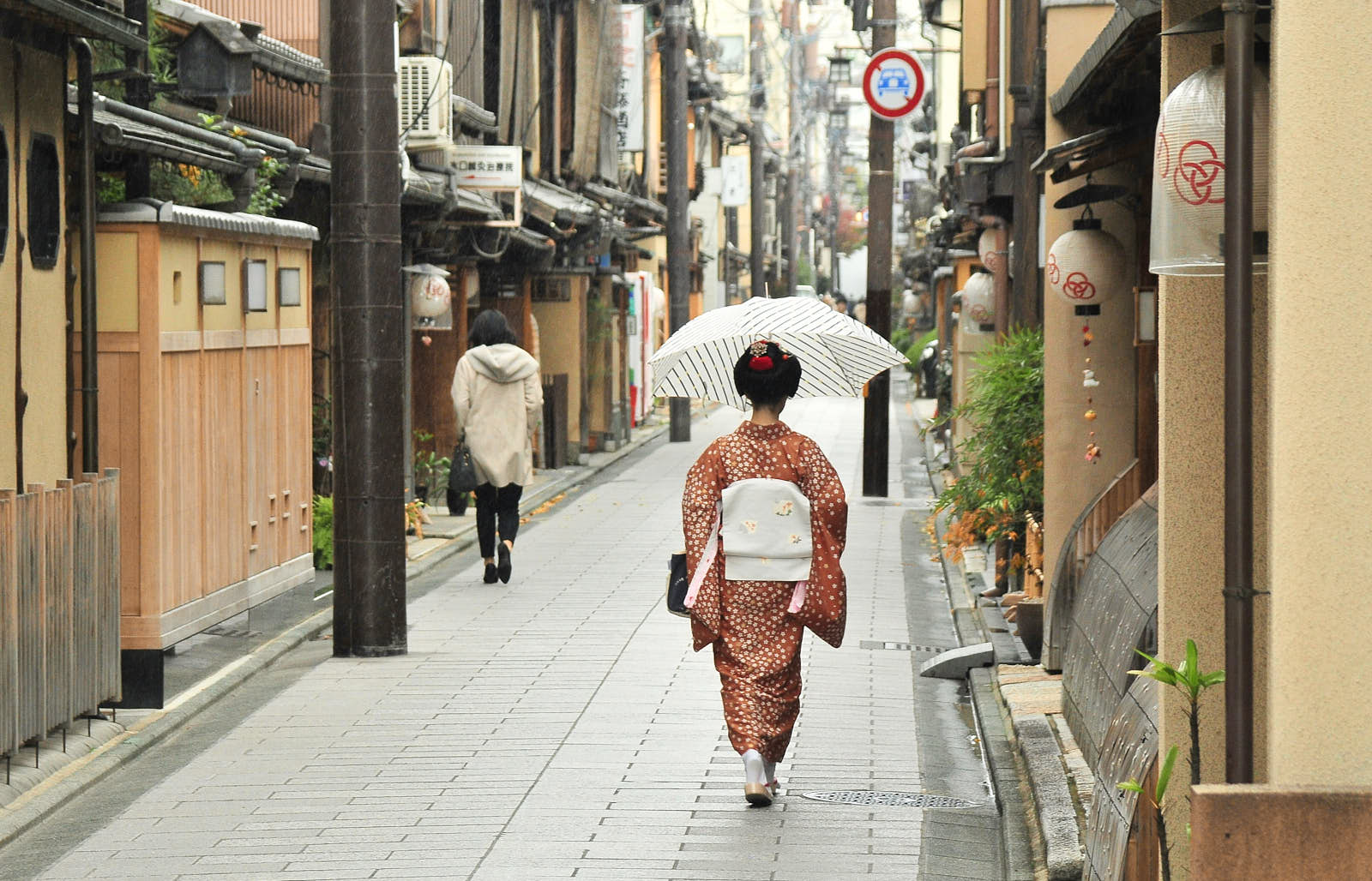 Современная застройка, конечно, изменила внешний облик города, но некоторые районы остались такими, какими они были столетие или более назад. Одни из них — кварталы гейш Гион и Понтохо. Гейша — артистка, развлекающая гостей танцами и пением, она ведет чайную церемонию и непринужденно беседует. Они носят кимоно и традиционные макияж и прическу.
