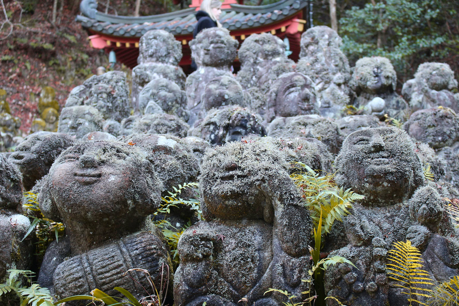 Тенрю-дзи основан в 1339 году. Когда-то это был мемориальный комплекс императора Го-Дайго, он состоял из сотни малых храмов, но сегодня здесь осталось лишь несколько построек. Дорожка петляет через сад, вокруг храма и приводит к озеру. Вход в сад и на территорию комплекса стоит 500 иен (250.5 рублей), с посещением внутренних помещений храма — 800 иен (400.8 рублей). Отаги Нэнбуцу-дзи расположен в красивом лесу. На его территории разбросаны сотни каменных, покрытых мхом фигур, а по храмовому комплексу бродит всего несколько посетителей — это очень уединенное и спокойное место. Билет обойдется в 300 иен (150.3 рублей).