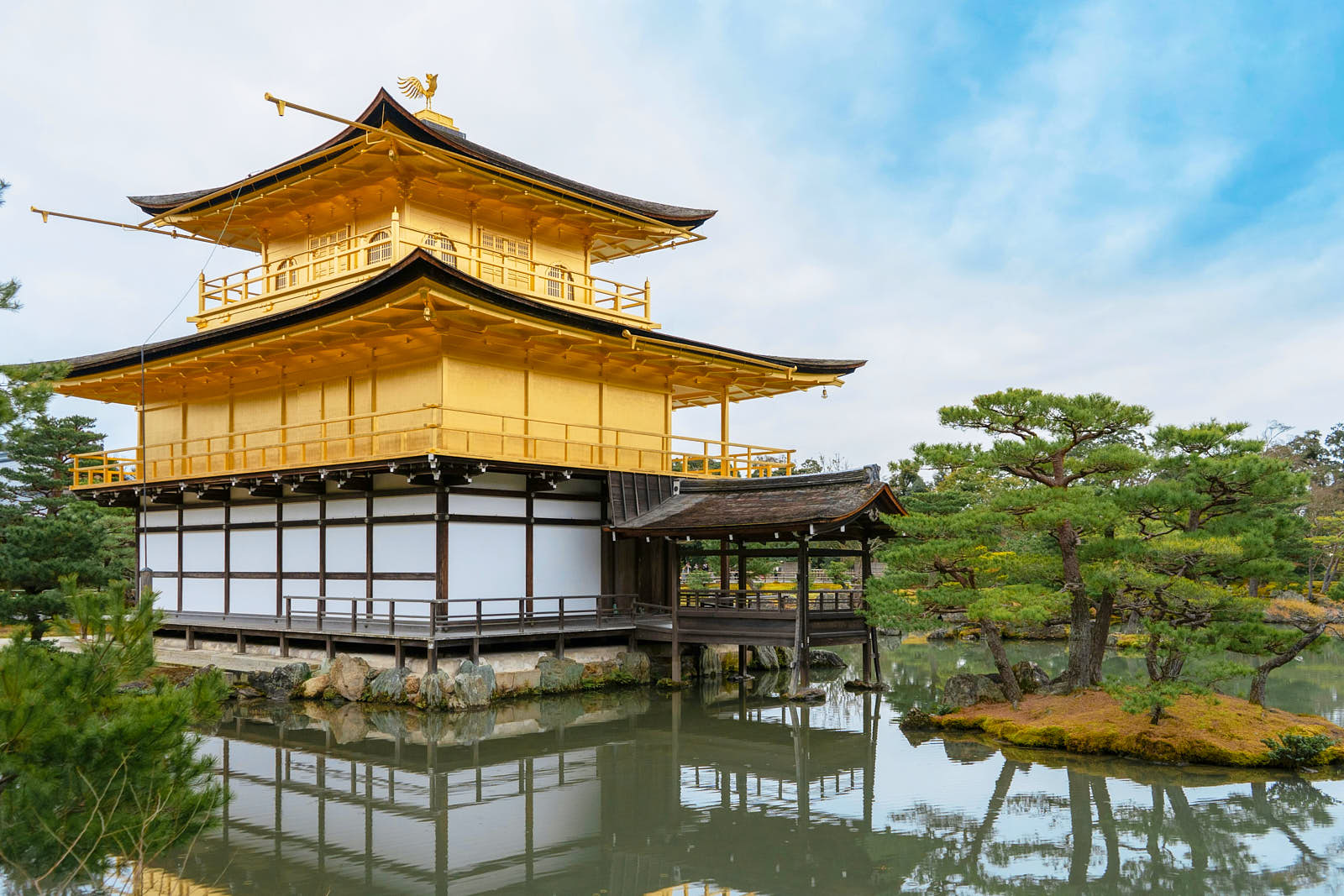 Адасино Нэнбуцу-дзи ♡ находится всего в нескольких минутах от Отаги Нэнбуцу-дзи. И снова вы увидите море каменных фигур Будды. Тут еще есть небольшой бамбуковый лес, которым вы будете наслаждаться, скорее всего, в одиночестве — людей тут тоже очень мало. Стоимость: 500 иен (250.5 рублей). Кодай-дзи ♡ расположен вдали от шума и суеты — холмы, сады и бамбуковый лес. Стоимость: 600 иен (300.6 рублей). Кинкаку-дзи ♡ конца 14 века обычно изображают на обложках путеводителей по Киото. Верхние этажи храма покрыты сусальным золотом, поэтому его также называют Золотым павильоном. Этот дзен-буддийский храм (дзен — одна из важнейших школ китайского и восточноазиатского буддизма) входит в состав коллективного объекта Всемирного наследия ЮНЕСКО «Памятники культуры древнего Киото (в городах Киото, Удзи и Оцу)». Его несколько раз перестраивали (сначала в середине 15 века, а затем в 1950-х годах).