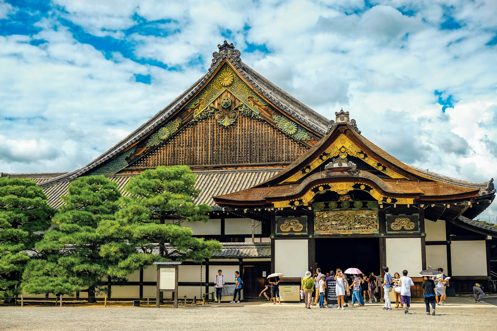 Замок Нидзё был резиденцией Токугавы Иэясу — первого в династии могущественных сёгунов, которые правили страной в период Эдо (1603–1867). Это один из самых известных замков в Японии, внесен в список объектов Всемирного наследия ЮНЕСКО. Это огромный комплекс, включающий дворцовые постройки, сад дворца Ниномару, окруженный рвом и каменными стенами. Это лучший из сохранившихся образцов архитектуры феодальной эпохи Японии: сложная резьба по дереву и декоративные панели, в сравнении со строгим убранством Императорского дворца, демонстрировали власть и богатство.