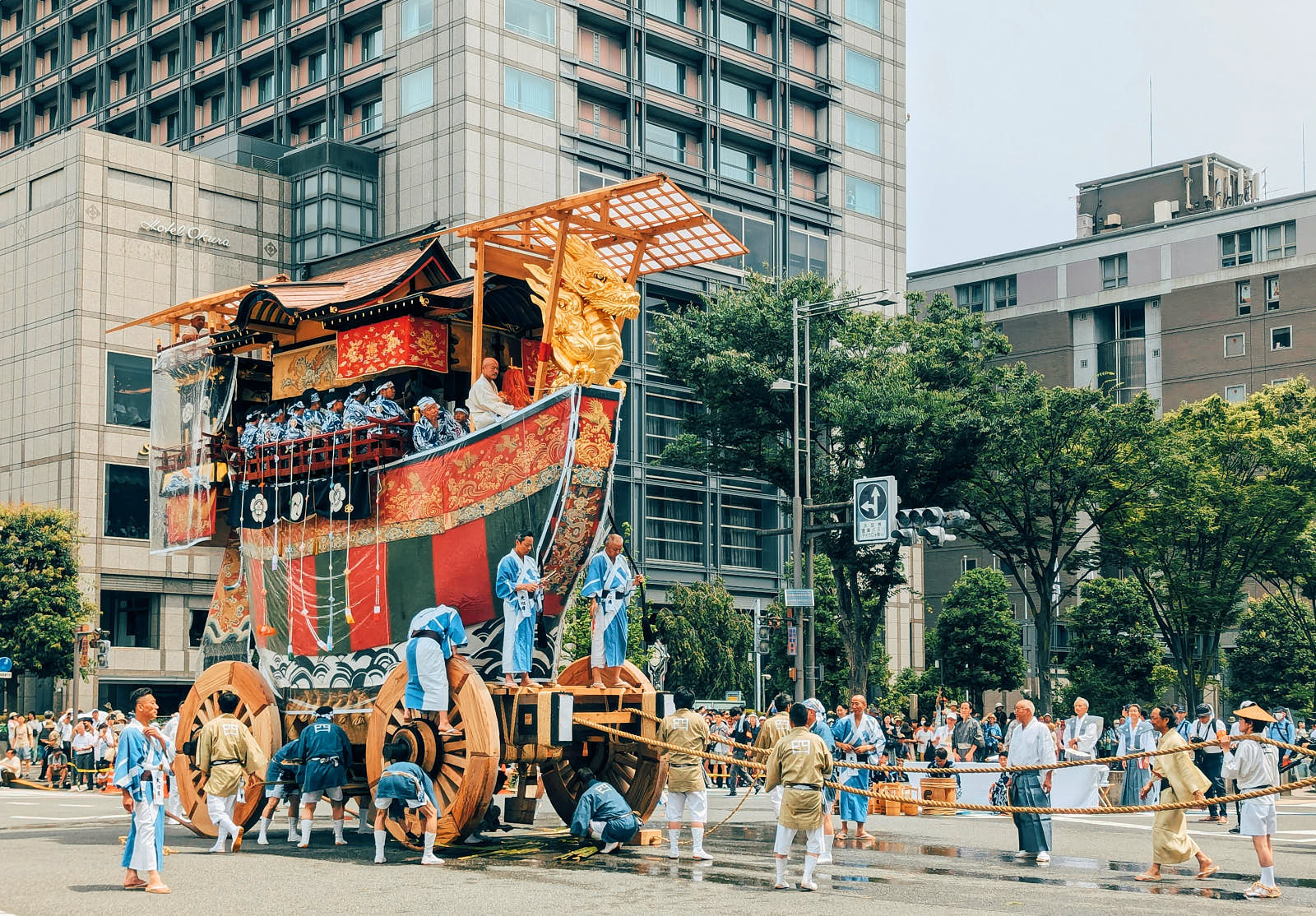 Район Гион является центром ежегодного фестиваля Гион Мацури, проходящего в июле на территории храма Ясака, расположенного рядом с парком Маруяма (одно из самых известных мест для любования сакурой в Киото). В рамках фестиваля, который, между прочим, проводят с 869 года, по улицам проходит парад искусно украшенных платформ (яма и хоко). Их декорируют изделиями ручной работы: разнообразными тканями, крашеным текстилем и скульптурами, а цель фестиваля — умилостивить разгневанных богов.