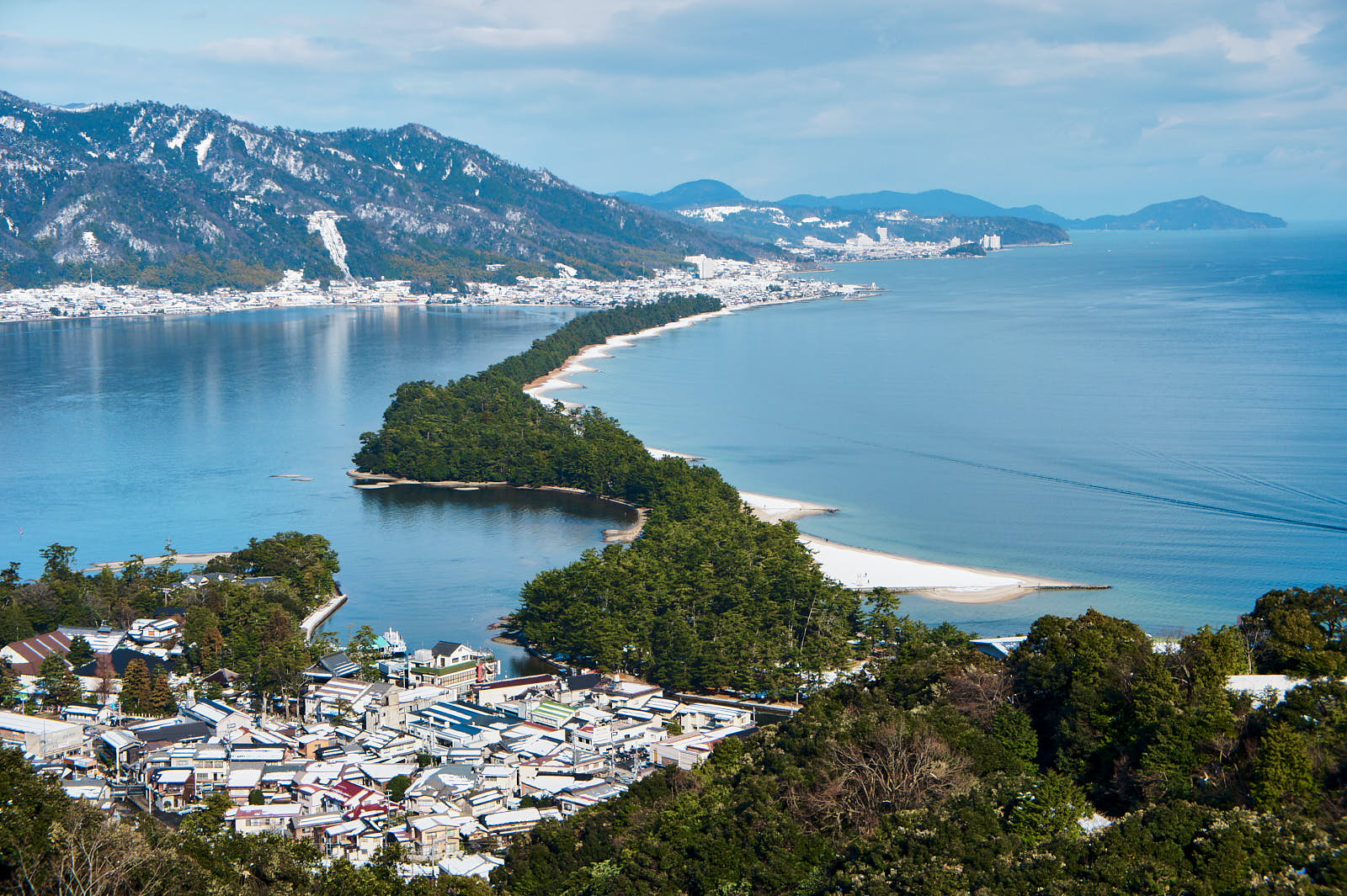 Аманохасидатэ ♡ (100 километров) считается одним из трех самых знаменитых пейзажей в Японии (наряду с заливом Мацусима в префектуре Мияги и островом Миядзима в префектуре Хиросима). Это тонкая полоска земли, соединяющая берега залива Мияцу.