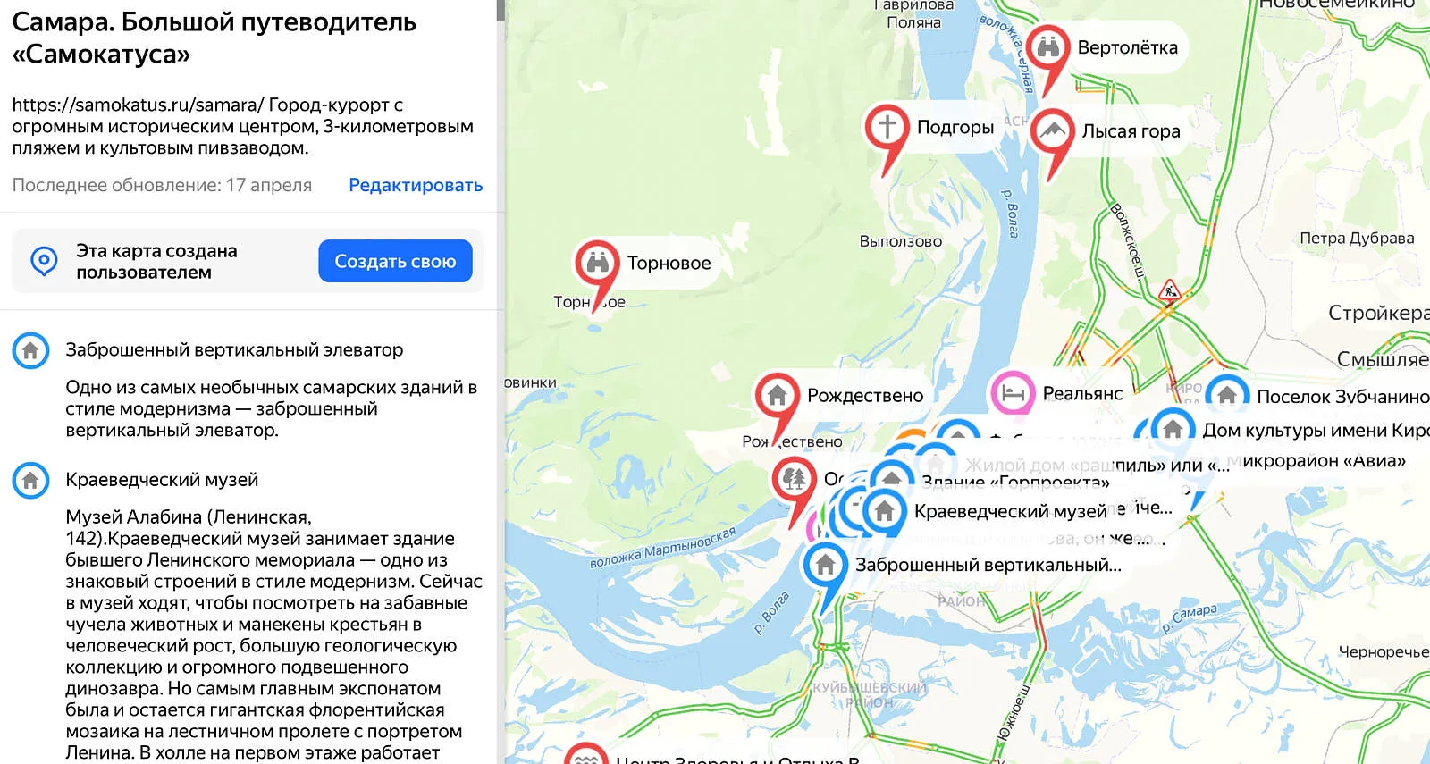 Карта достопримечательностей Самары
