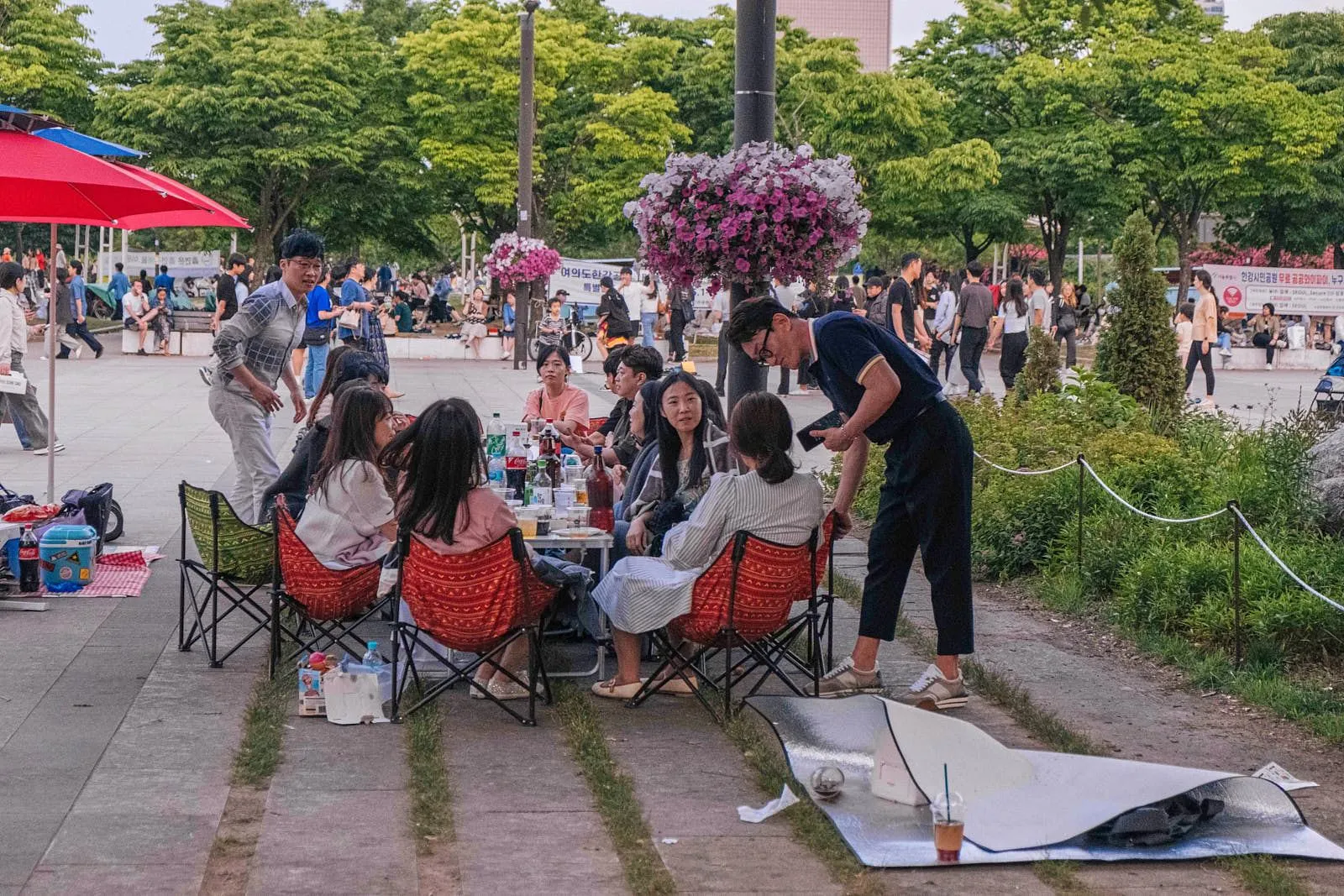 Сеул — столица Кореи, мегаполис с населением 9,4 миллиона человек. Вы приезжаете в Сеул и попадаете в водоворот под названием «палли-палли» (быстро-быстро). Много людей, много машин, высотная застройка. Но при этом даже торопятся тут как-то налаженно, по порядку, не нарушая очередь. Корейцы очень стараются, чтобы людям было комфортно, эта забота довольно неброская, но постоянно чувствуется. В Сеуле чистые и комфортные туалеты абсолютно везде, даже в метро. В общественных местах люди разговаривают негромко, и, естественно, все звуки из телефона идут только через наушники. У входа в магазины стоят стойки для мокрых зонтов и столики для напитков. Зашел в магазин, поставил свой бабл-ти, выходишь — забираешь.