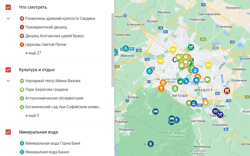 Карта достопримечательностей Софии