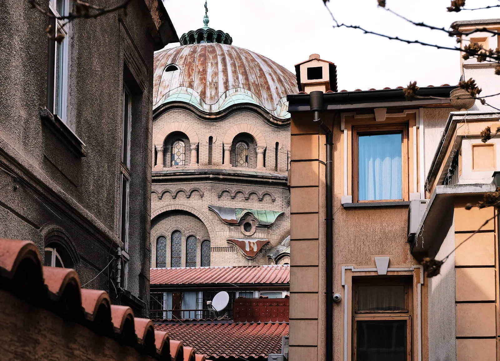 Через дорогу от мечети находится собор болгарской православной церкви — храм Святая Неделя. Он построен в неовизантийском стиле, типичном для многих церквей на территории Болгарии. Это важное место для страны, потому что именно здесь группа левых коммунистов в 1925 году совершила теракт, в ходе которого погибли 160 человек и многие представители болгарской элиты. Вход бесплатный. Внутри можно увидеть яркие цветные витражи, древний позолоченный иконостас и раку с мощами сербского короля Стефана. Напротив мечети находится еще и Софийская синагога. Это крупнейшая синагога в Юго-Восточной Европе и третья по величине во всей Европе. Софийскую синагогу построили в начале 20 века для общины сефардских евреев. Архитектура здания — комбинация мавританского и венецианского стилей.