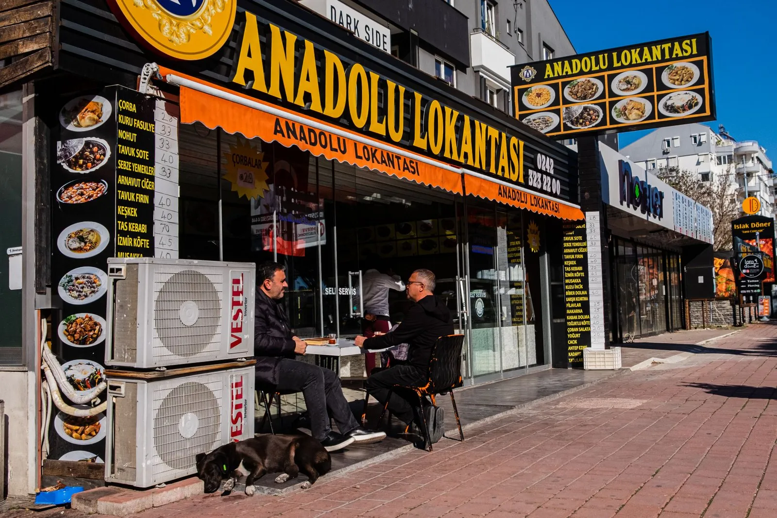 Обед в недорогом кафе: от 200 лир (349.1 ₽). Ищите слово Lokanta в названии.