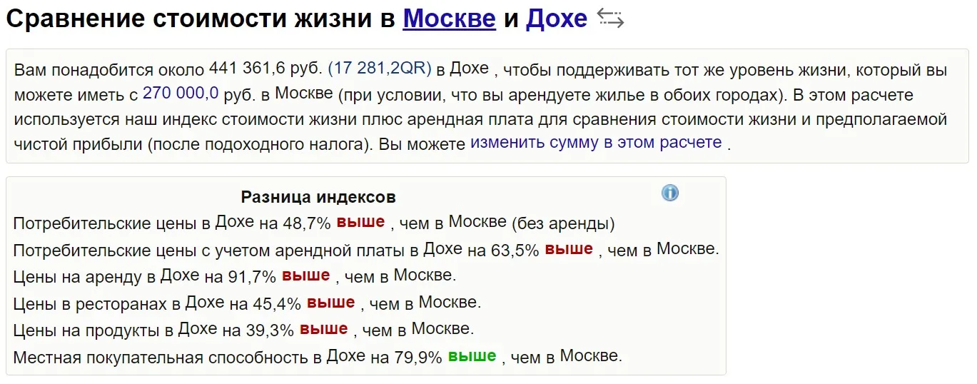 Насколько дороже в Дохе по сравнению с Москвой?