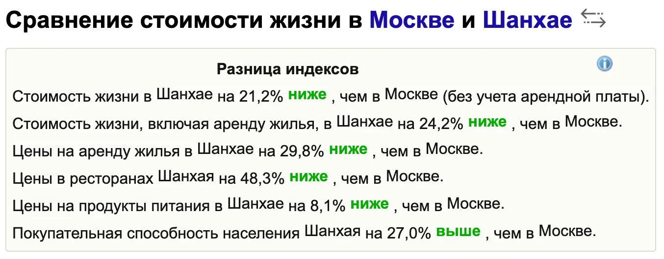 Насколько дороже в Шанхае по сравнению с Москвой