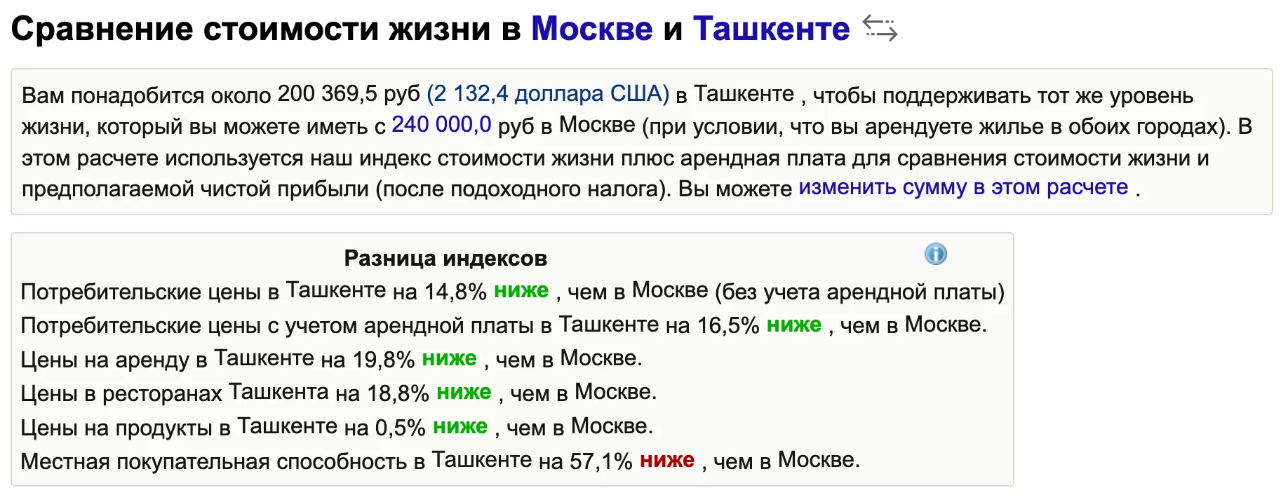 Насколько дороже в Ташкенте по сравнению с Москвой