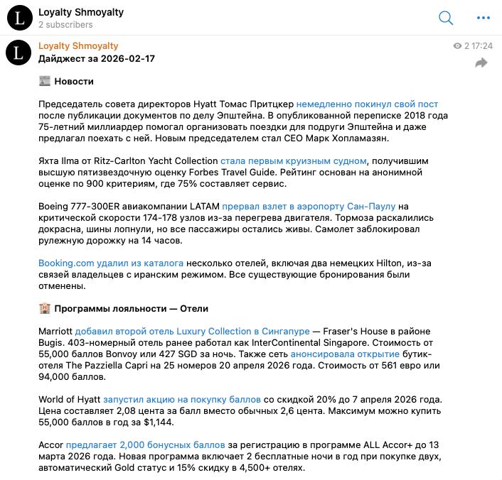 • Канал «Loyalty Shmoyalty» напоминает, что накопленные мили и баллы могут быть полезны не только для отпуска, но и спасти в экстренных ситуациях, позволяя купить дорогие билеты в последний момент без значительных трат.