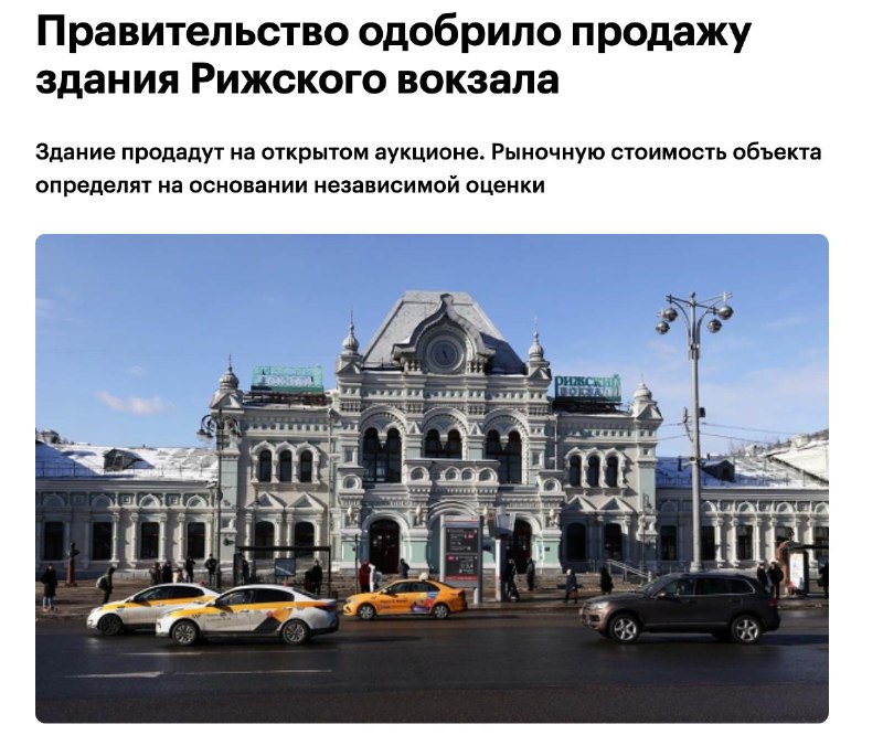 • Объекты: Правительство РФ одобрило продажу здания Рижского вокзала в Москве на открытом аукционе.