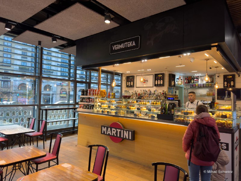 Mercado de la Ribera в Бильбао стоит прямо на берегу реки Нервьон. Открылся в 1929 году, больше 10 000 кв. м под одной крышей — один из крупнейших крытых рынков Европы. И вот там мы пошли есть пинчосы. Не потому что дёшево, а потому что так едят сами баски. По 2,5 евро штука — берёшь 4–5 штук, стакан txakoli (местное кислое белое вино), и ты уже сыт и счастлив.