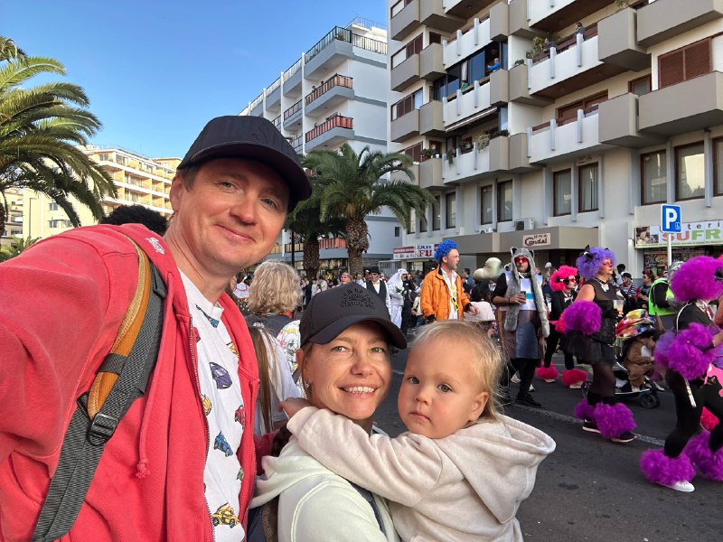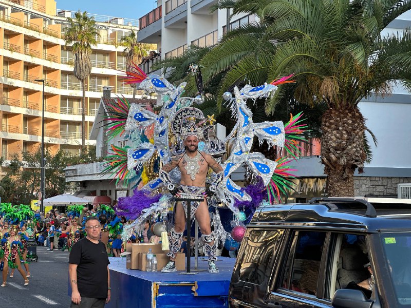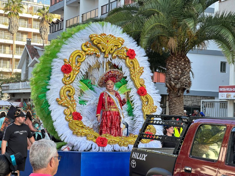 Отчётик со вчерашнего карнавала в Puerto de la Cruz. В параде приняли участие карнавальные группы Пуэрто де ла Крус — компарсас, мурги и праздничные коллективы, — а также тысячи местных жителей и туристов. Тема карнавала 2026 года — Мексика: всё действие было оформлено в мексиканском стиле с яркими нарядами, каррозами (украшенными платформами) и латиноамериканской музыкой.