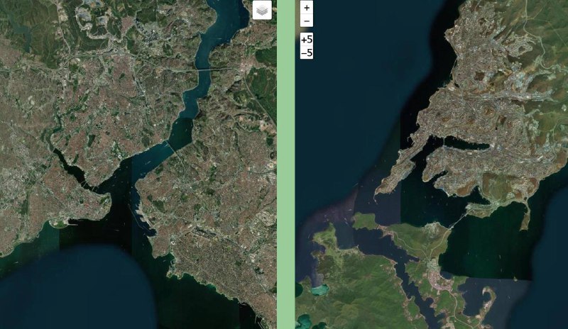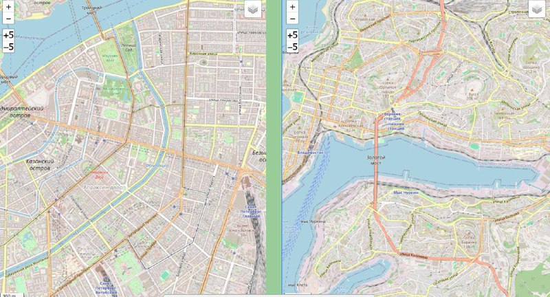 Сервис для сравнения карт городов в одинаковом масштабе. Сравнение Невского Проспекта и Светланской, Золотого рога и Босфора Восточного с их тёзками в Стамбуле.