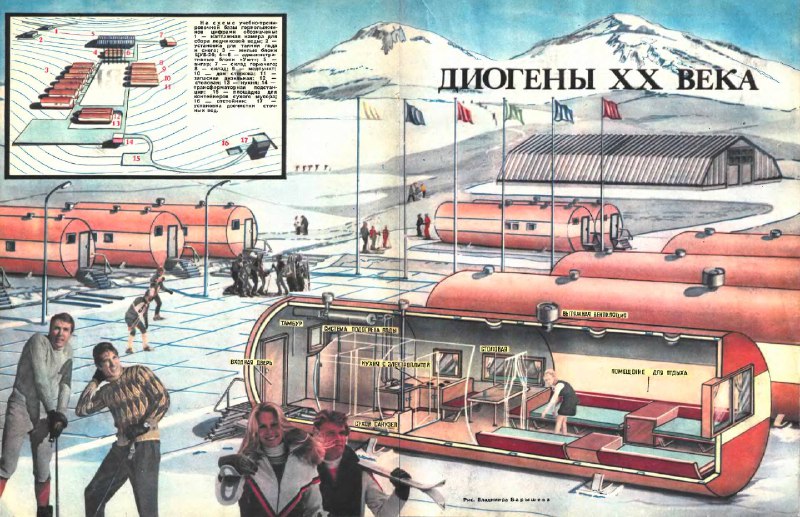 В таких жилищах было все необходимое для жизни. Спальные зоны, столовая, кухня с электроплитой, сухой санузел, система подогрева воды и входной тамбур, отгороженный от остального пространства, чтобы холод снаружи не проникал внутрь жилого помещения.