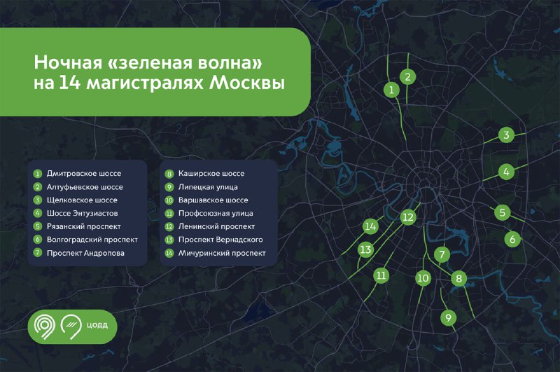 Режим «зелёной волны» будет работать с 00:00 до 05:00 и позволит обеспечить беспрепятственный проезд по магистралям и сократить время в пути.