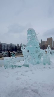 Но погода подкачала, вроде и не холодно, но ветер и периодически вьюжило, так что мы не долго погуляли по центру и посмотрели ледовые скульптуры у Храма на крови.