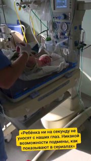 Всё буквально на наших глазах. Никто никуда её не уносит. Нигде нет даже и возможности подменить или перепутать ребёнка, как показывают в сериалах.