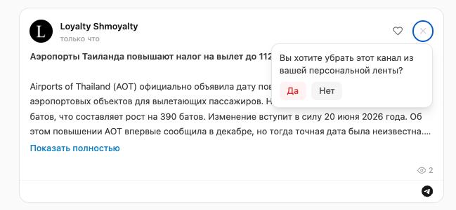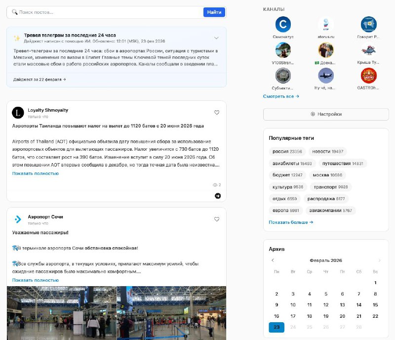 Мой ответ блокировке телеграма - персональный фид телеграма в вебе. В принципе и без блокировки так читать удобнее.