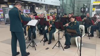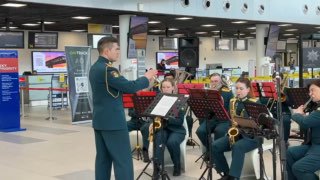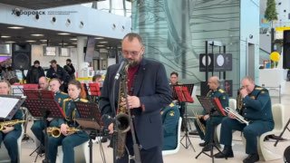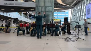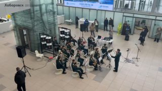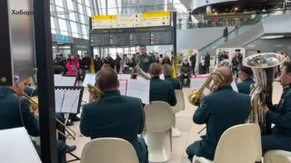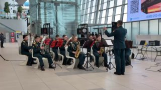 В терминале А аэропорта Хабаровск прошел концерт оркестра 64-й гвардейской отдельной мотострелковой бригады.