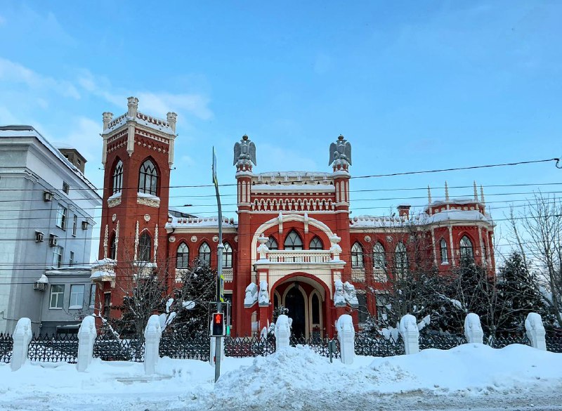 Самое красивое здание Кирова (Вятки) — особняк купца Тихона Булычева, возведенный по проекту архитектора Ивана Чарушина в 1911 году. Булычев прожил в доме три года, в 1915 году уступил его городу за символическую сумму. После этого тут расположился Дом инвалидов и сирот (шла Первая мировая). С 1919 года особняк занимают органы госбезопасности. Орлы были восстановлены в ходе реставрации 2000-х гг.