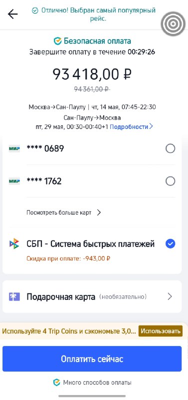 С одной стороны, автор продолжает успешно бронировать внутренние рейсы в Бразилии через программы миль и бонусов. Обычно билеты на внутренних маршрутах стоят 70-140 долларов, но благодаря накопленным милям удается получить выгодные предложения. Это уже третий забронированный билет за время поездки, включая маршрут GOL из Сальвадора да Баии в Рио-де-Жанейро.