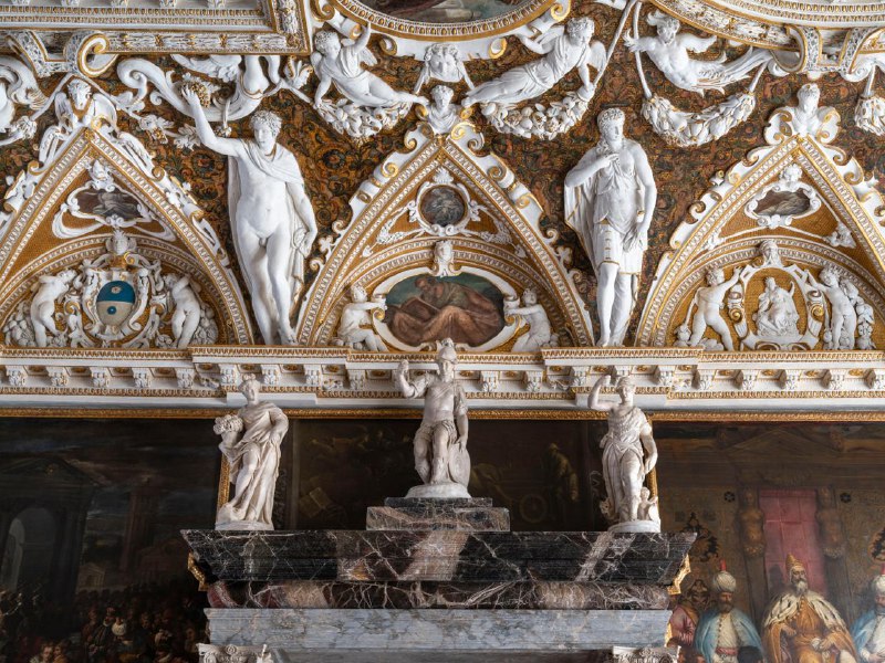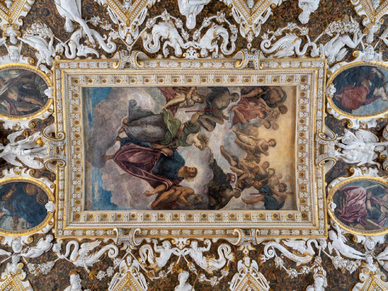 Зал четырех дверей в венецианском Дворце Дожей два года был в лесах – велась реставрация потолка и порталов дверей. И вот в начале января леса убрали, и зал теперь как новенький.