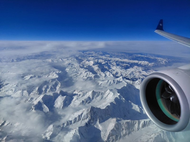 Второй сегмент из CDG выдался шикарным: яркое небо и снежные вершины Альп. Как же вдохновенно...