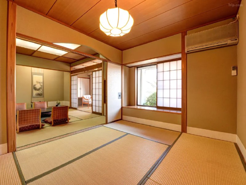 В ней в чате хвалили вот такой рёкан: он слегка бетонный и уставший, но все равно вполне традиционный и очень типичен для Кинугавы. Плюс в том, что на берегу реки, с купелями с видом на реку и недорого. Гостям с тату нельзя в общие купели, но можно взять резервируемую приватную. Отзывы можно почитать тут и тут. Минусы в том, что он в самом конце деревни, ну и что в Кинугаве вы неизбежно увидите заброшки.